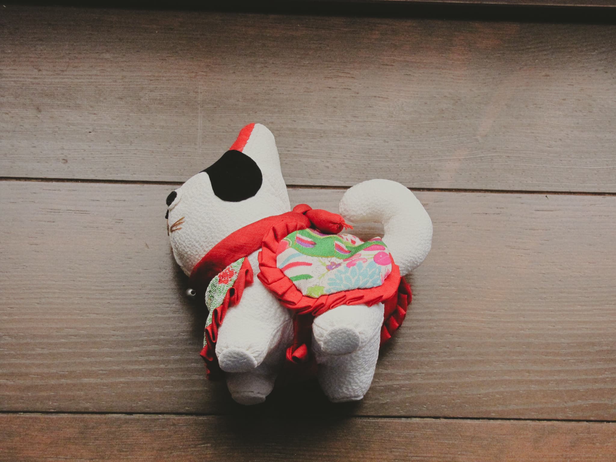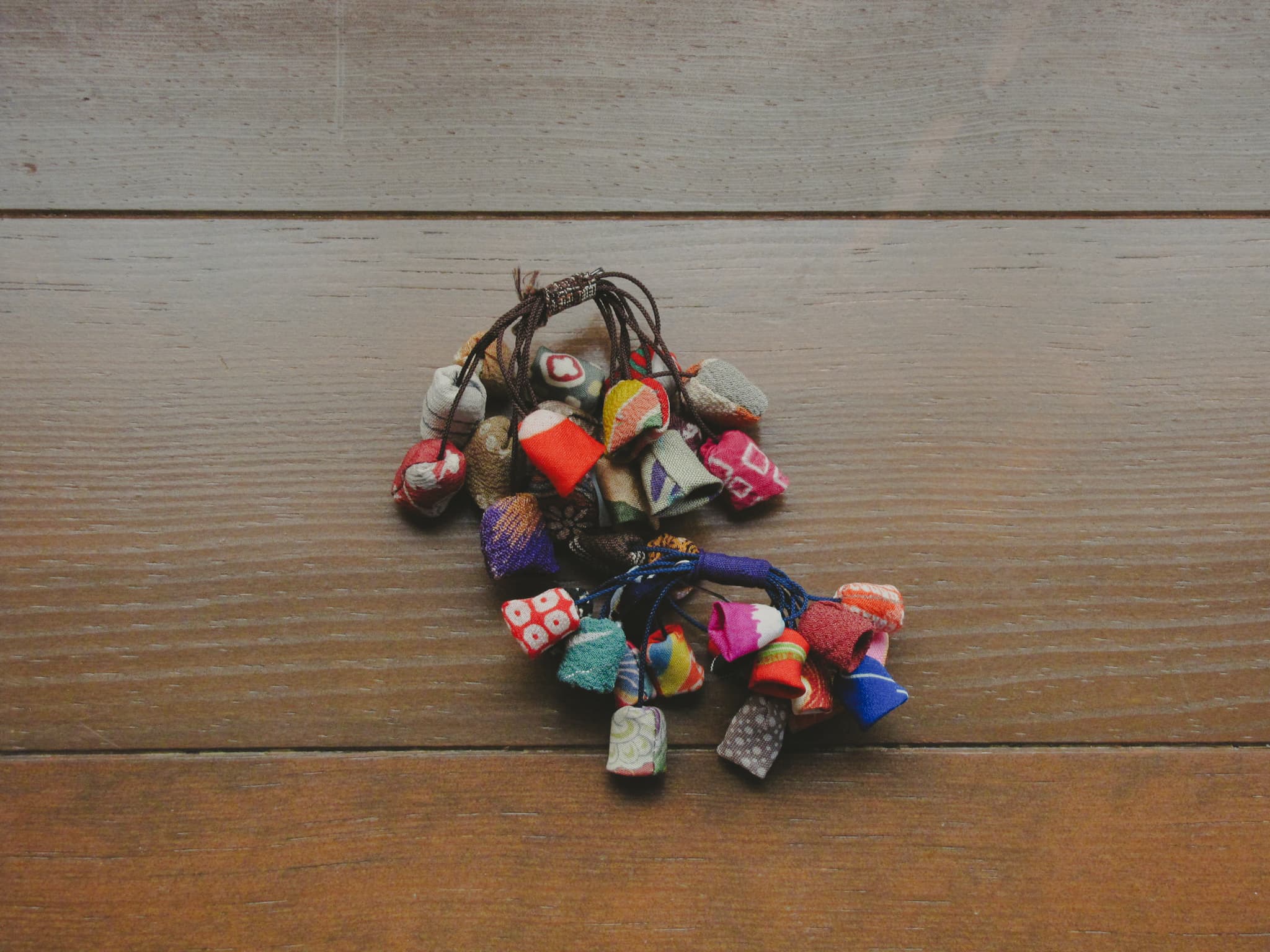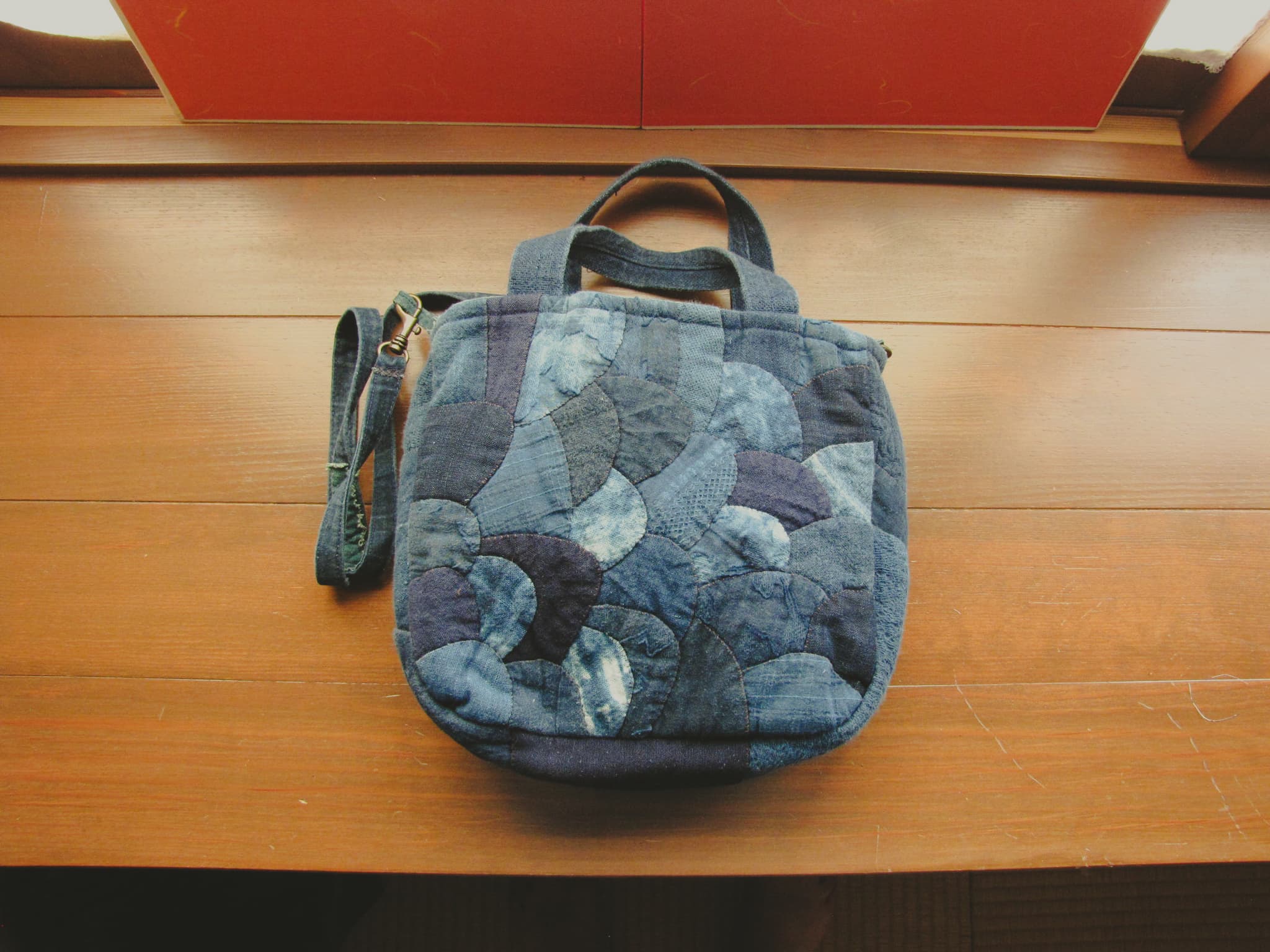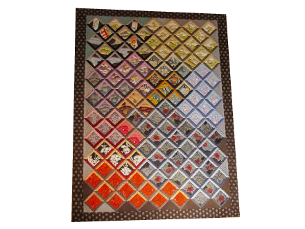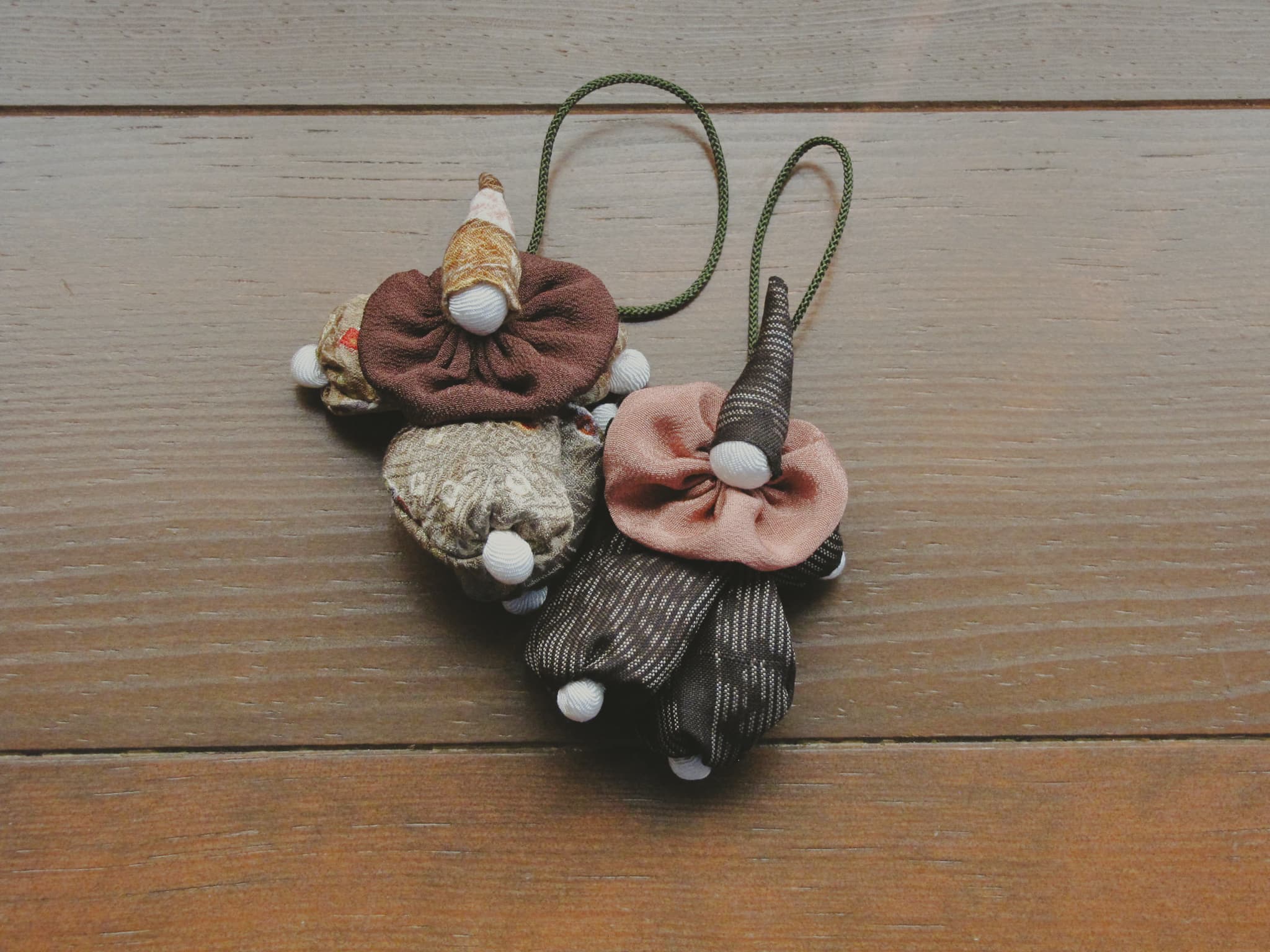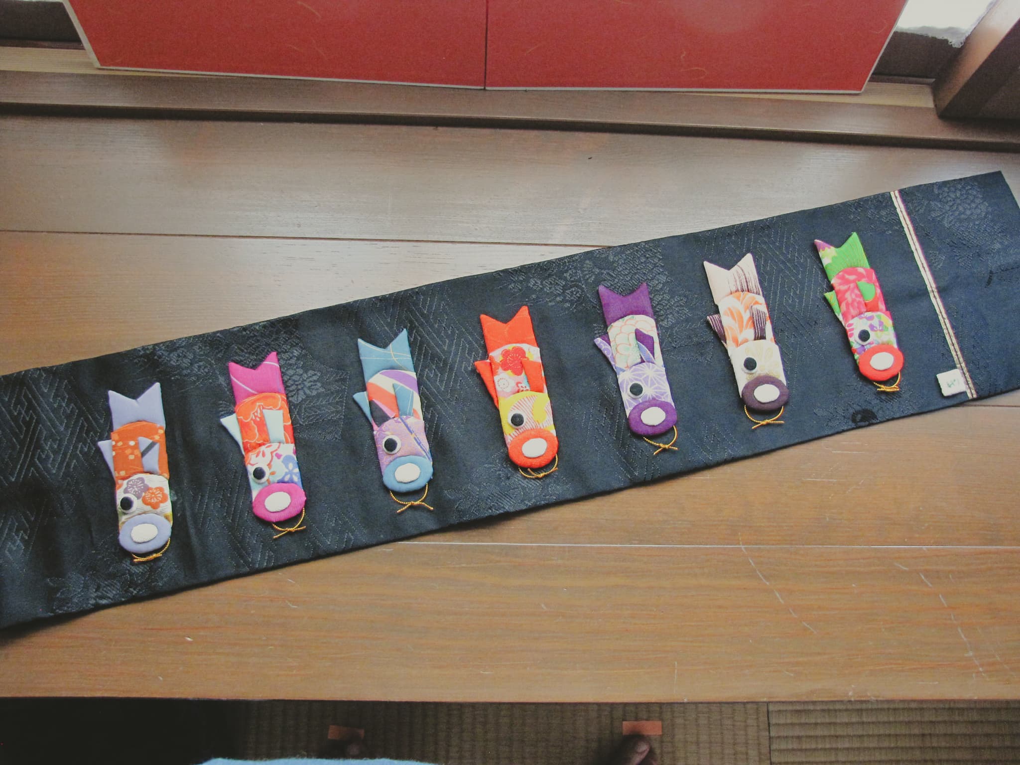おばあちゃんのお母さん、夫、子供2人の着物の端切れを使って作った思い入れのある作品。